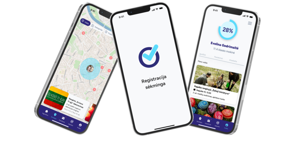 į socialines ir pilietines veiklas per patogią, motyvuojančią ir intuityvią programėlę.